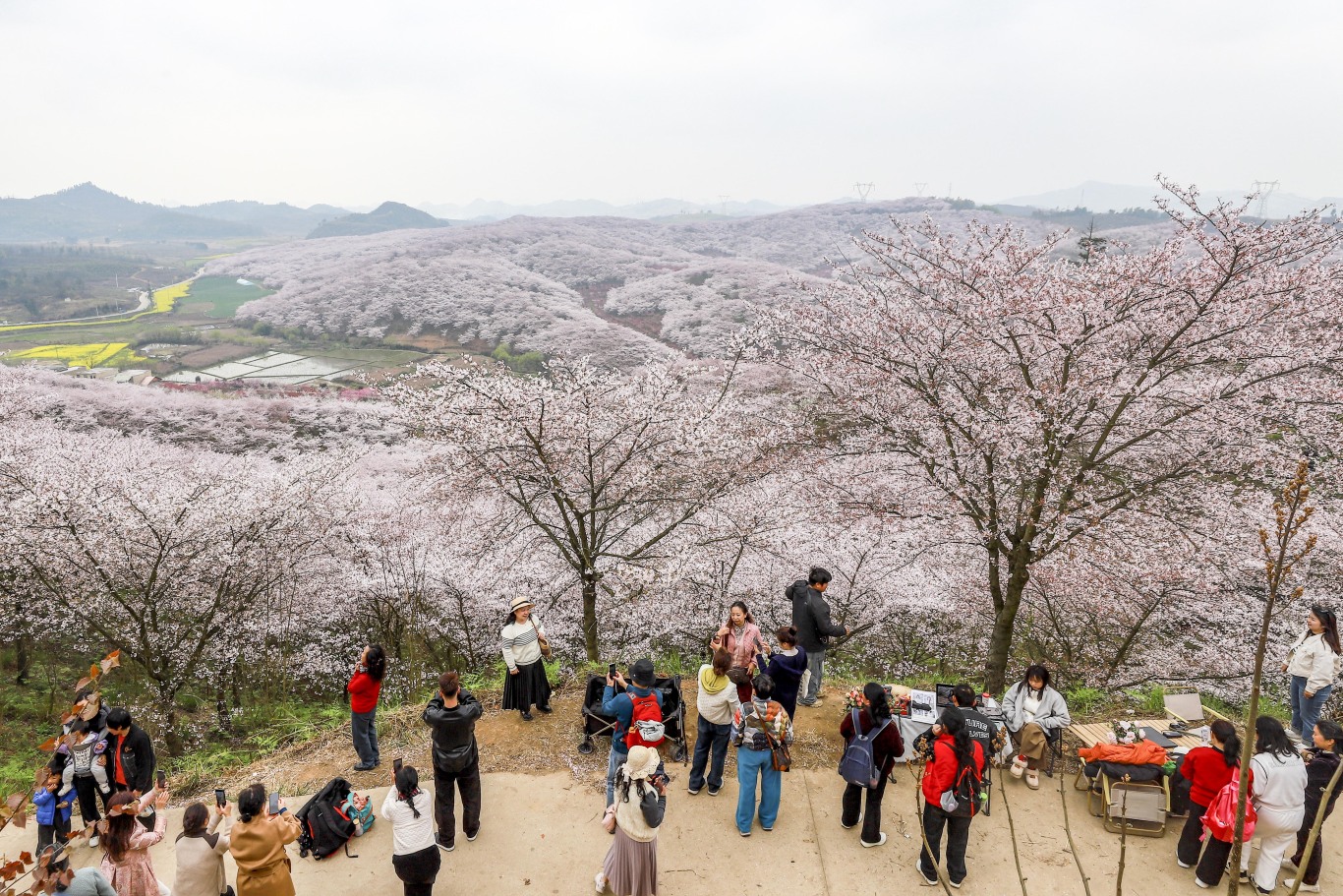 黄腊万亩樱花盛开 踏青赏花游人如织